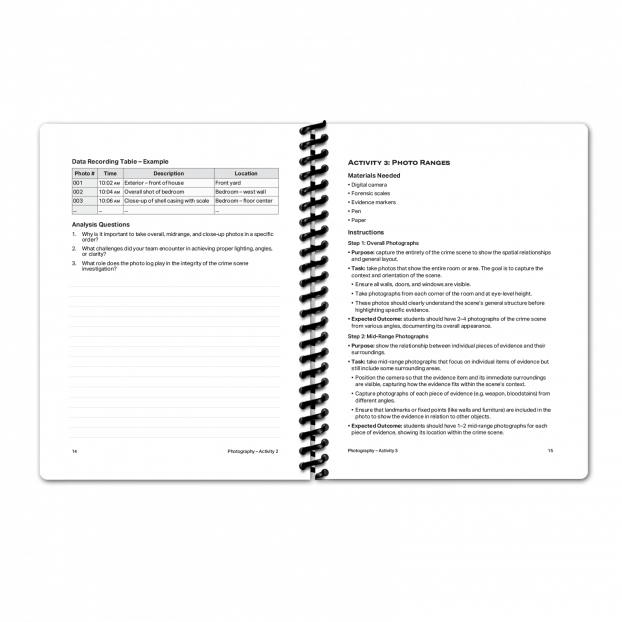 This comprehensive Forensic Investigations bundle contains everything you need to get started with introductory forensics. There is a guide that walks you through 19 beginner lab activities, from crime scene photography to blood spatter analysis, along with a corresponding notepad for recording data as you complete each lab. Also included, you'll find one of our folding WhiteCoat Clipboards made of lightweight aluminum that showcases our Crime Scene Investigation label with handy visuals and additional information. This will help you break down crime scenes like a pro, while holding your data-collection notepad in place with a sturdy writing surface - perfect for work in the field.