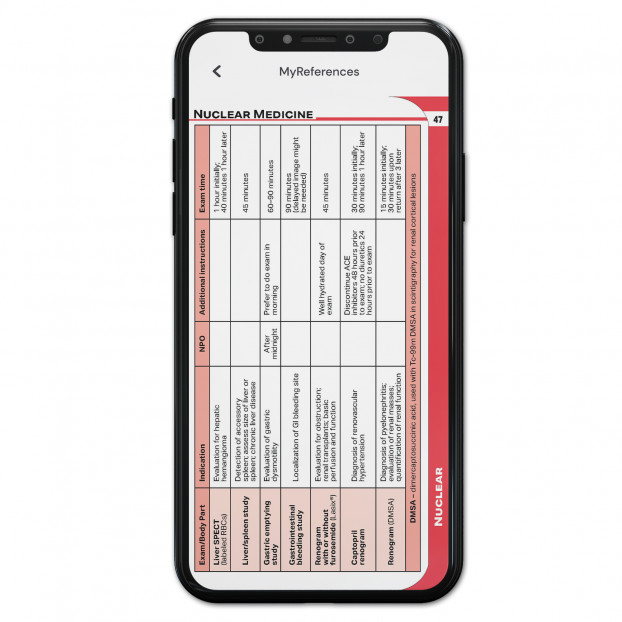 Completely revised and enhanced comprehensive pocket radiology guide covering everything from how to order imaging studies to the most recent American College of Radiology guidelines for management of contrast media allergy and reactions. Chapters cover chest X ray reading, body imaging basics, imaging planes, Hounsfield units, CT scans, MRIs, ultrasound modalities, nuclear medicine study requirements and more. Each section includes detailed charts to help you select the correct radiologic study and ensure appropriate patient preparation. Patient and provider instructions are attached to each imaging section to guarantee that the test will be ordered and completed successfully (e.g. NPO status, creatinine check, medications to stop taking prior to exam). MDpocket Radiology also includes pretreatment protocols for contrast media reactions, as well as descriptions and treatment guidelines for mild, moderate, and severe contrast reactions from pediatrics to adults. Different CT scans are reviewed including CT windows and representative contrasted and high resolution CT images. The MRI chapter covers multiple MRI sequences (T1, T2, STIR, FLAIR, T2*, DWI, ADC) and includes extensive images that will help you rapidly recognize MRI image types. This guide is designed for use by all healthcare providers in radiology including technicians, radiology departments, imaging technologists, residents, medical students, and more. You can even add other medical information to this guide to have a complete pocket reference guide via our chapter selection tool.