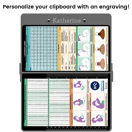 WhiteCoat Clipboard® Lactation Consultant Edition is a valuable clinical resource for IBCLCs, nurses, midwives, and postpartum care professionals. This quick, lactation-specific reference includes infant feeding requirements (0–6 months), newborn weight conversion charts, latch scoring guidance, breastfeeding positions, flange sizing references, and visual steps for achieving an effective latch—providing essential information at a glance during patient care.