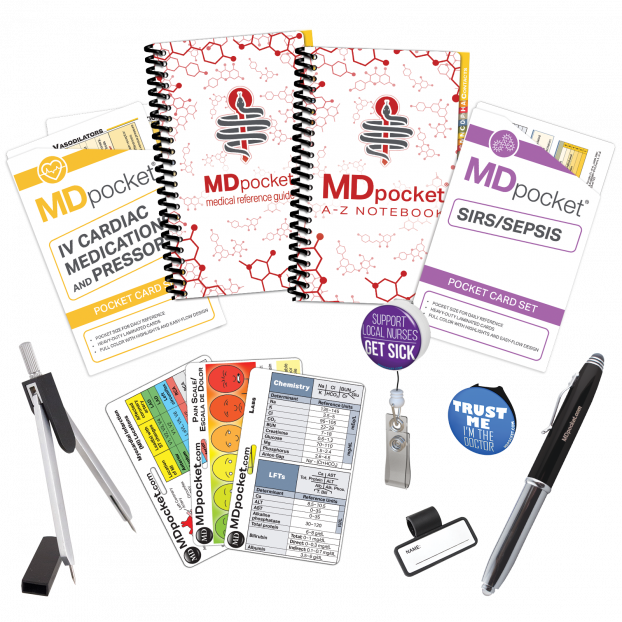 Looking for the perfect gift for your favorite medical professional? Look no further than the MDpocket Gift Box. This box features exclusive MDpocket reference material so your MD or Resident can stay prepared no matter what arises. Customize this box with your favorite sassy badge reel, stethoscope button and Rapid ID to truly make this gift one-of-a-kind! See below for more details!