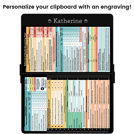 This WhiteCoat Clipboard® features 4 key screening tools for suicide, depression, anxiety and substance abuse so you can have these screens right at your fingertips. This clipboard also includes a Mental Status Assessment and an easy to use table to help you distinguish delirium from dementia. Great for all healthcare providers in Behavioral Health/Mental Health fields.